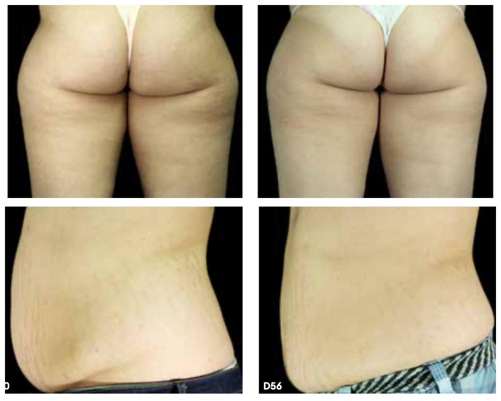 - Se reduce el grosor de la capa de grasa subcutánea: -25% en muslos, -49% en caderas, -29% en abdomen (mujeres) y -66% (hombres).