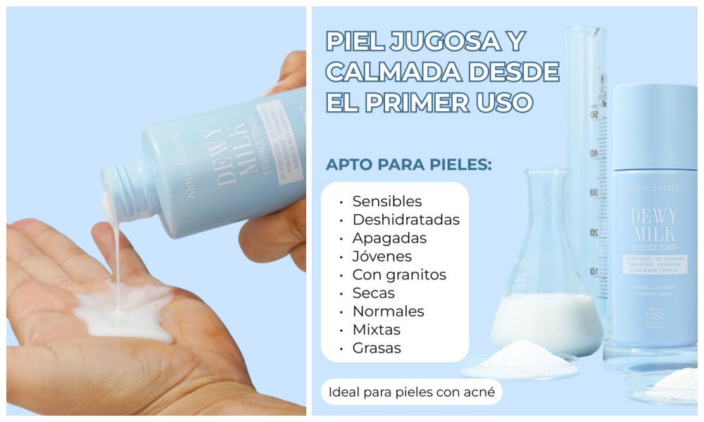 Para quienes buscan un cuidado aún más completo, la firma de cosmética propone incorporar también el tónico-esencia Dewy Milk. Este producto de textura ligera, oil-free y tipo “leche” limpia, hidrata, calma y prepara la piel como primer paso de la rutina facial.