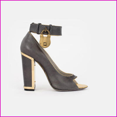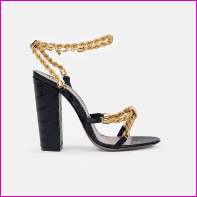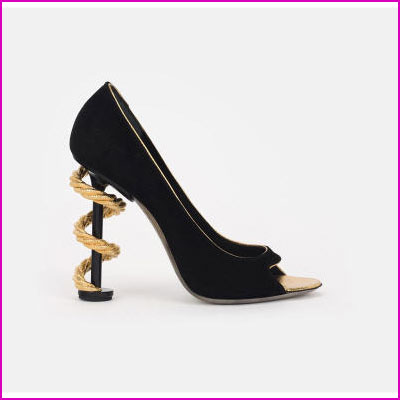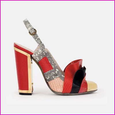 Y no te pierdas los zapatos, zapatos vertiginosos con volantes de karunga y piel de serpiente, otros modelos con piel de lagarto y cocodrilo. Y para destacar unos zapatos de tacón con espiral, unos en color gris brillante y botón militar y otros en ante negro. Todo un lujo de esta colección.